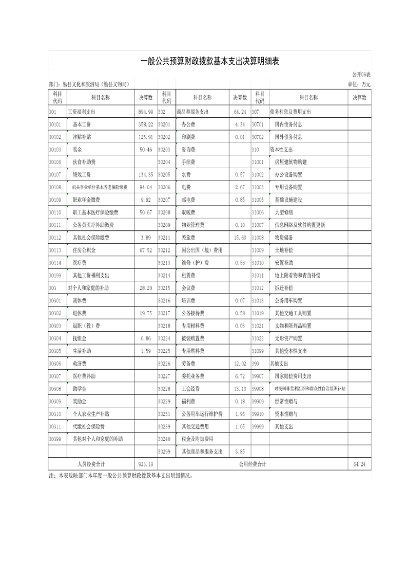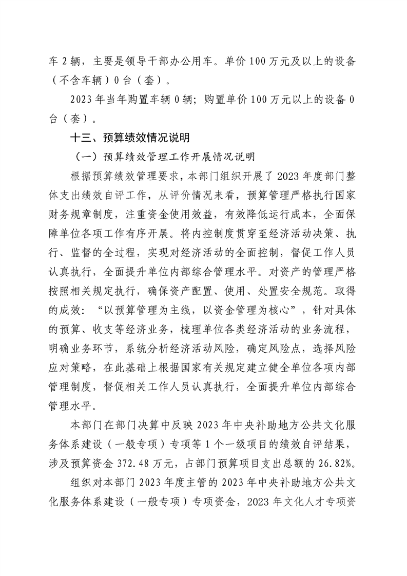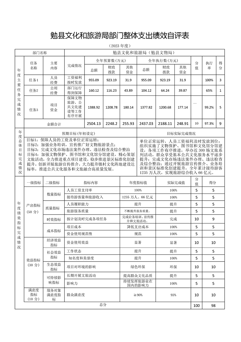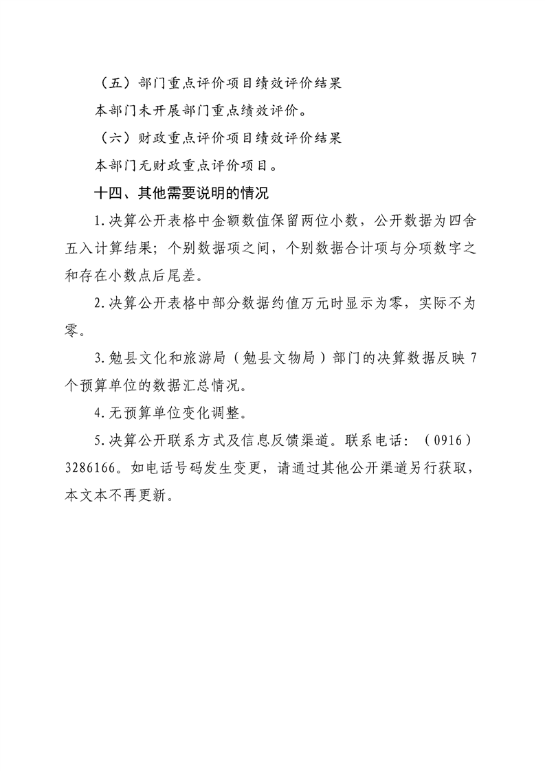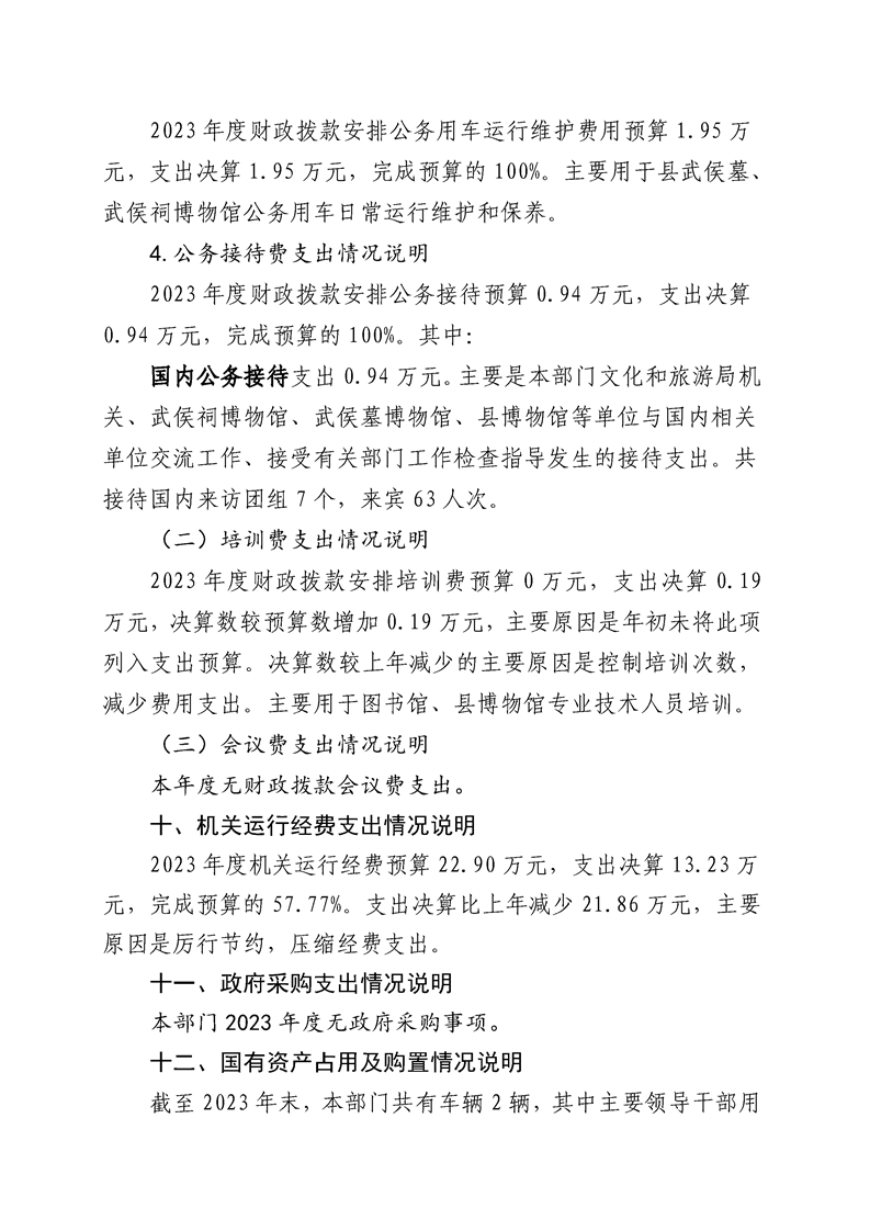 勉县文化和旅游局(勉县文物局)2023年度部门决算公开