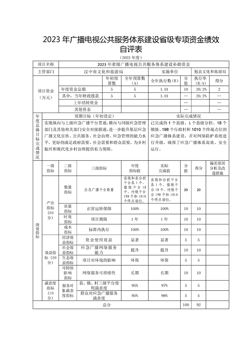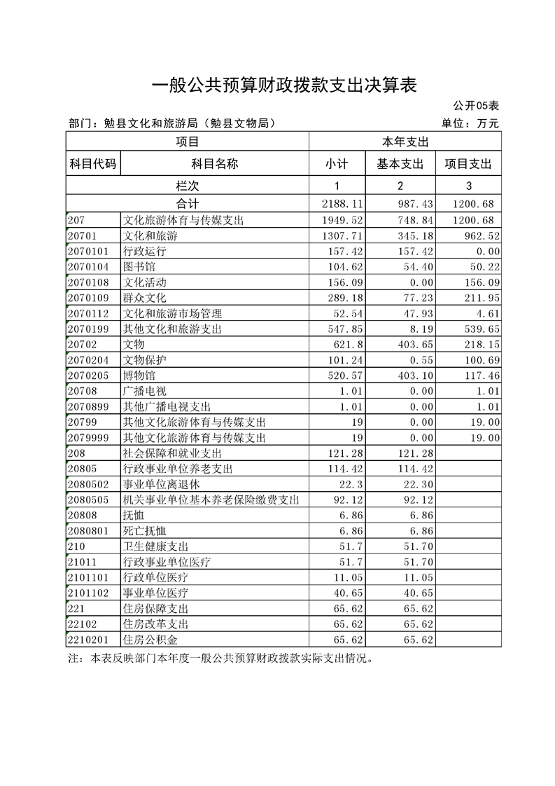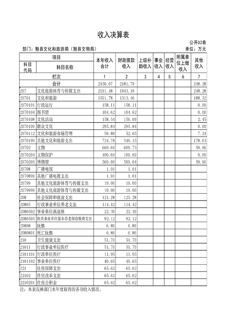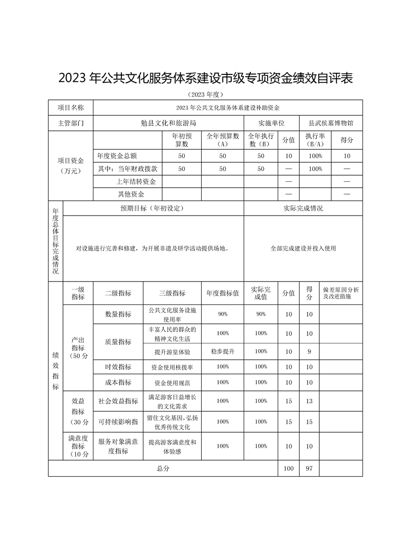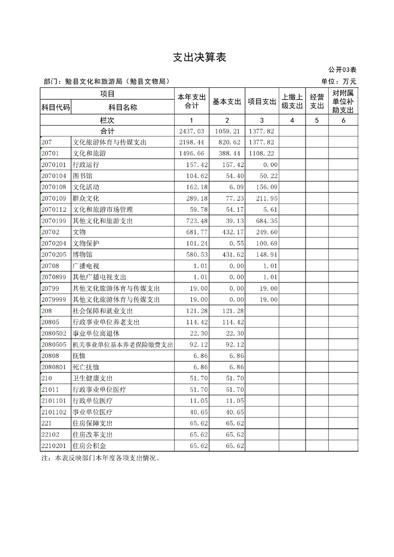 勉县文化和旅游局(勉县文物局)2023年度部门决算公开