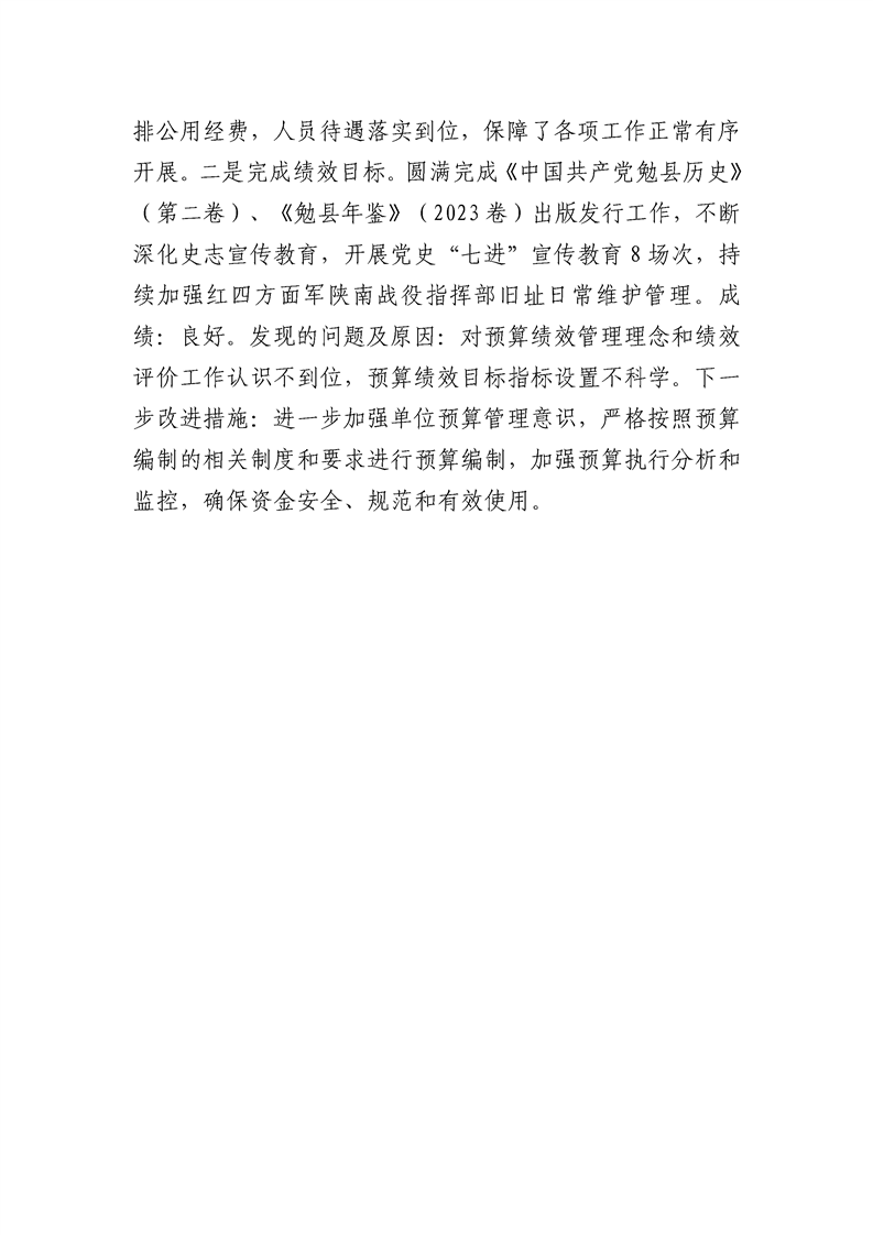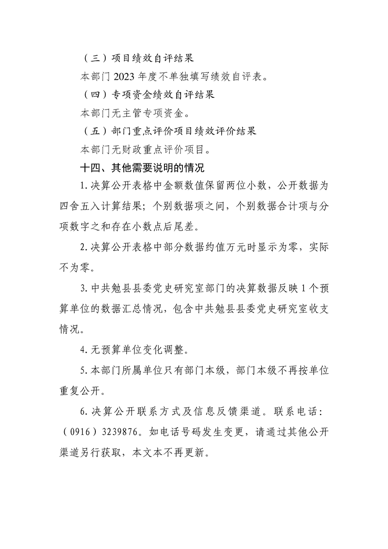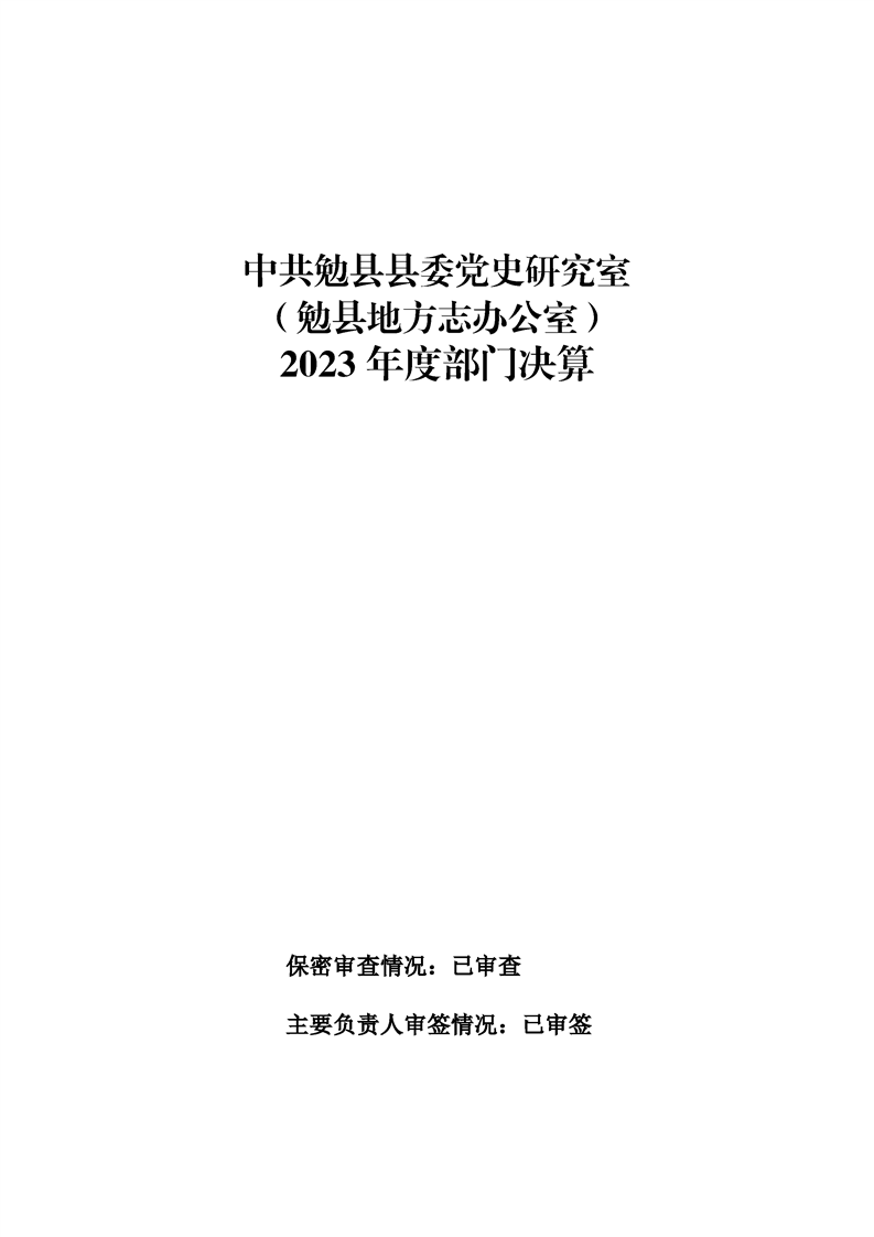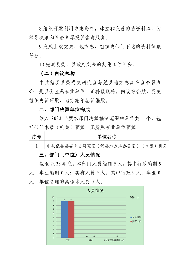 中共勉县县委党史研究室(勉县地方志办公室)2023年度部门决算公开