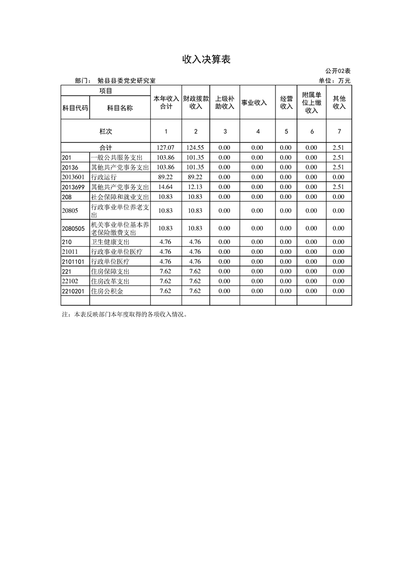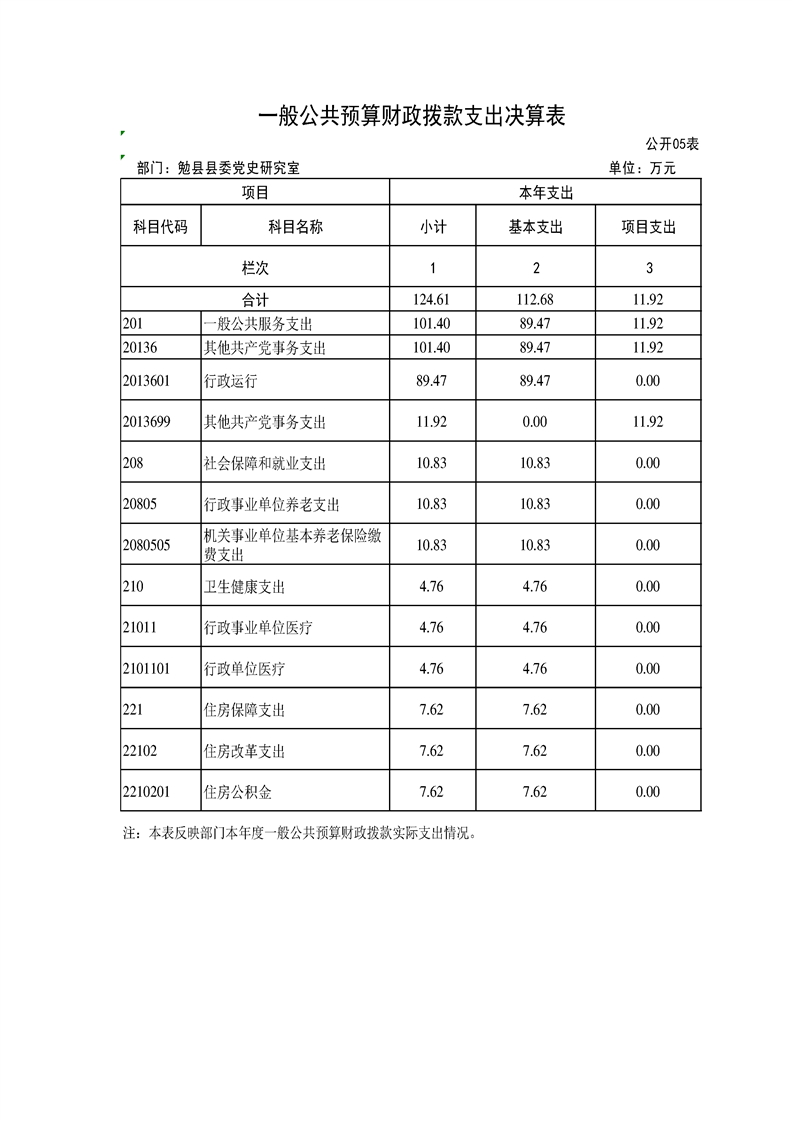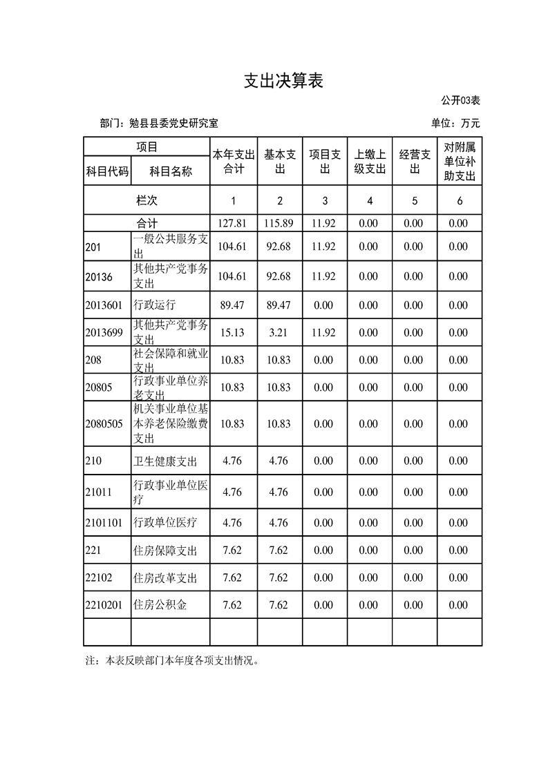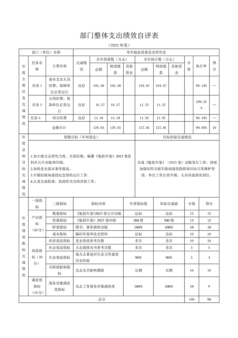 中共勉县县委党史研究室(勉县地方志办公室)2023年度部门决算公开