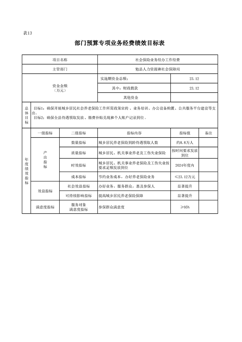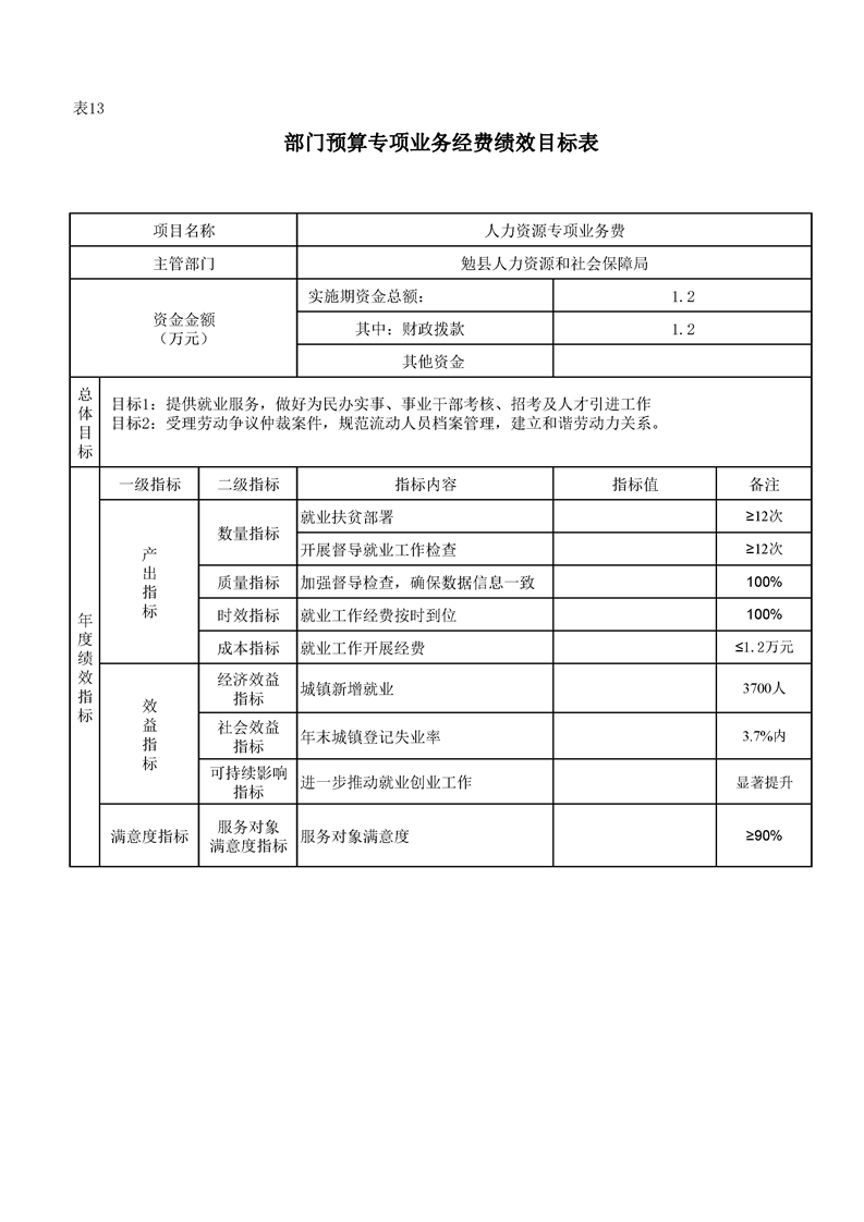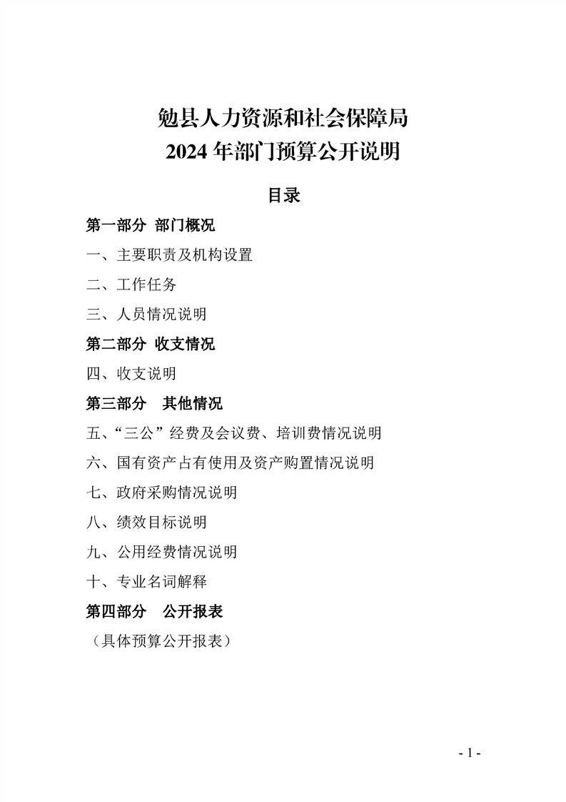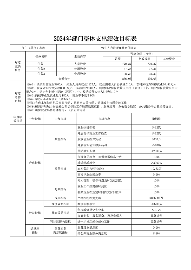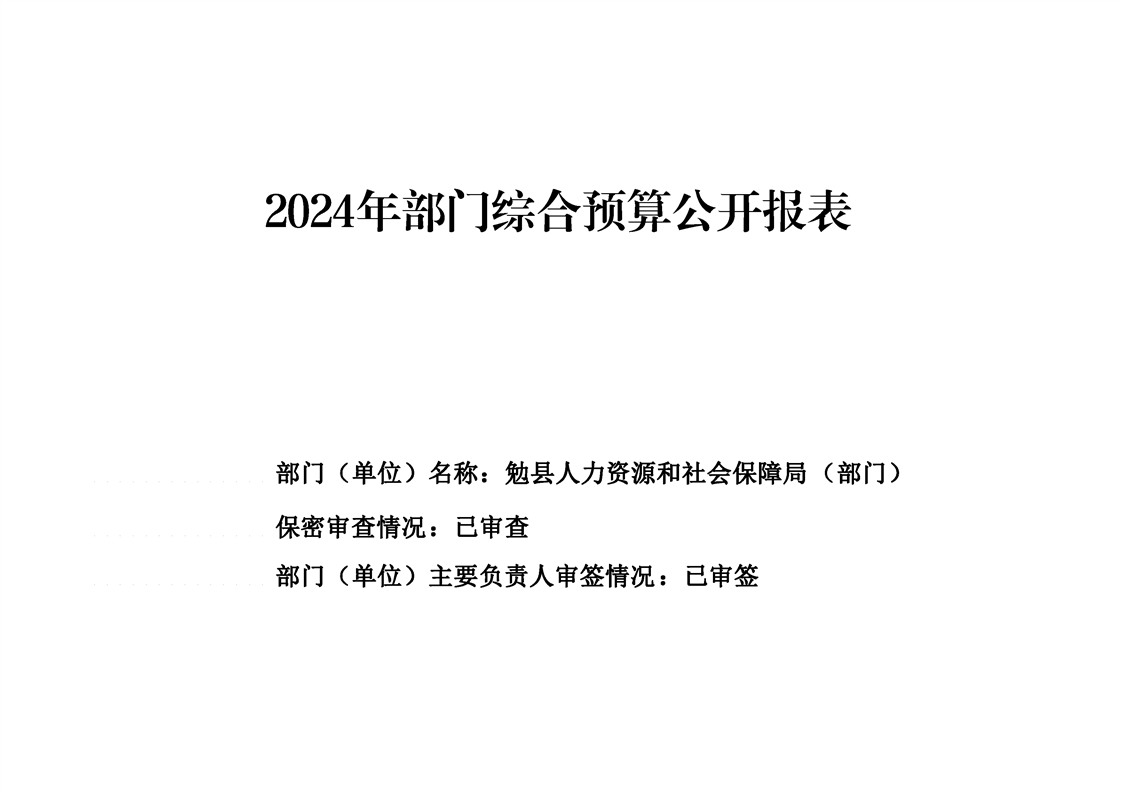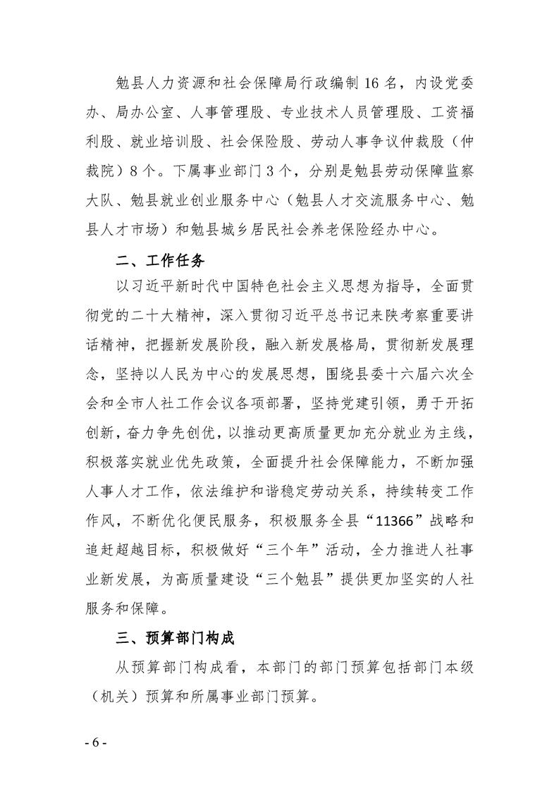 勉县人力资源和社会保障局2024年部门预算公开说明
