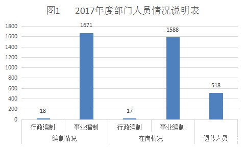 截止2017年底,本部门人员编制1,689人,其中行政编制18人、事业编制1671人。实有在职人员1605人,其中行政17人、事业1588人。系统内管理的离退休人员680人。离休3人,退休677人,退休人员已经全部移交养老经办机构。