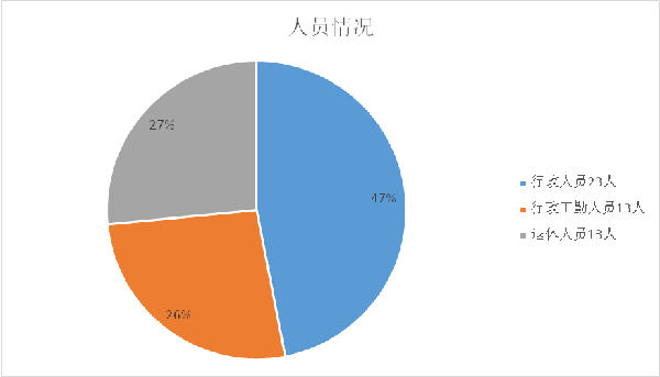 截止2017年底,本部门人员编制42人,其中行政编制28人、机关工勤编制14人;实有人员36人,其中行政23人、机关工勤13人。退休人员13人(如下图)。