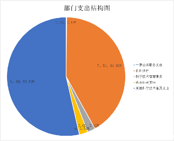 3、本年支出构成情况。2017年本年支出合计171.09万元,其中:一般公共服务支出0.22万元,占总支出的0.13%,机构运行71.54万元,占总支出的41.81%,科学技术管理事务支出3.65万元,占总支出的2.13%,社会科学支出4万元,占总支出的2.34%,其他科学技术普及支出91.68万元,占总支出的53.59%。