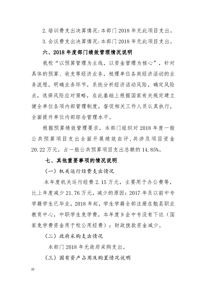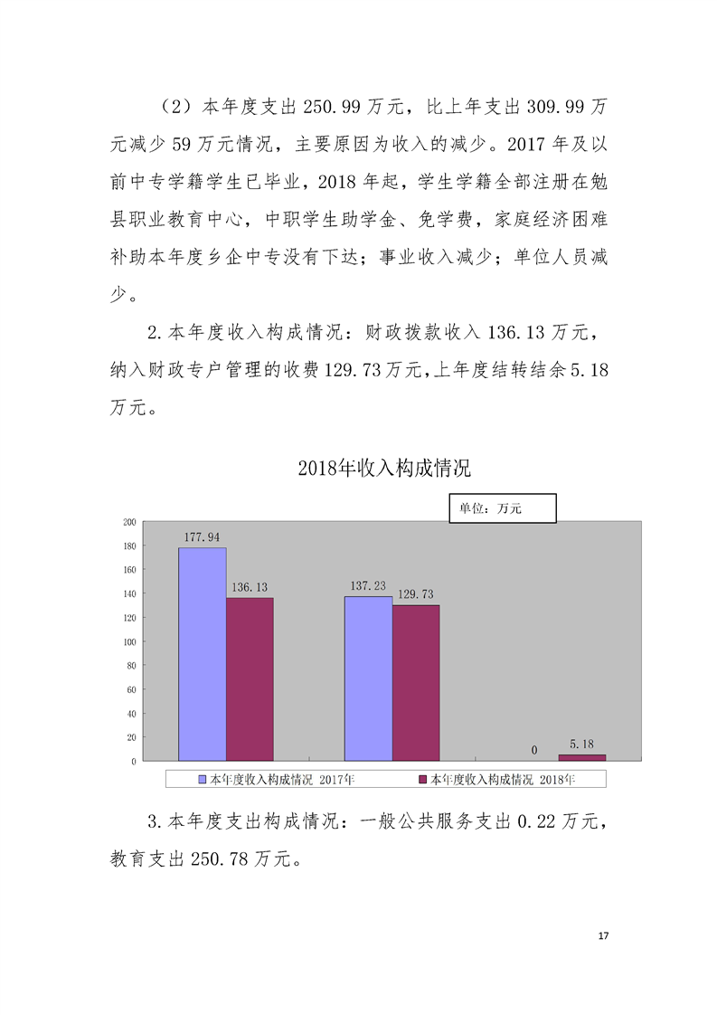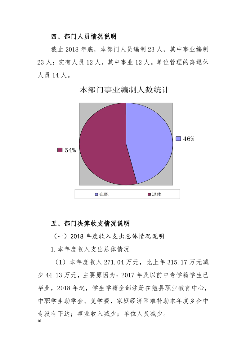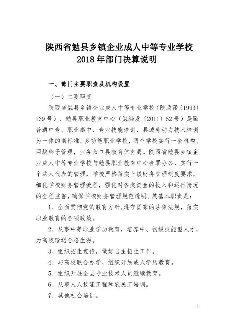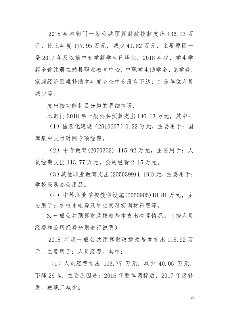 2018年勉县乡镇企业成人中等专业学校2018年决算说明