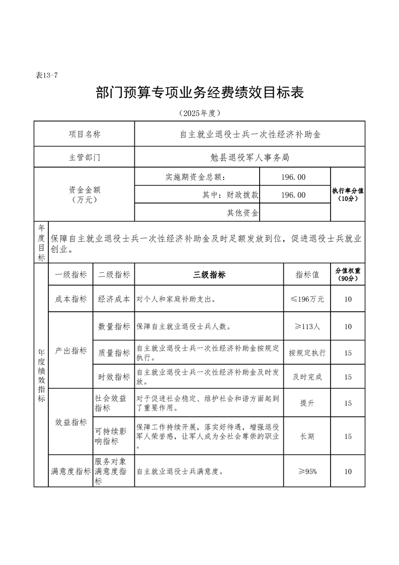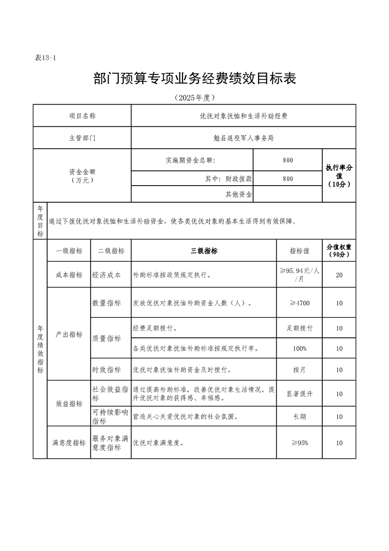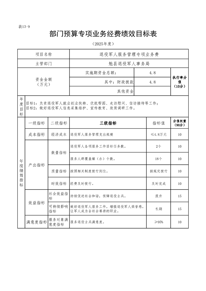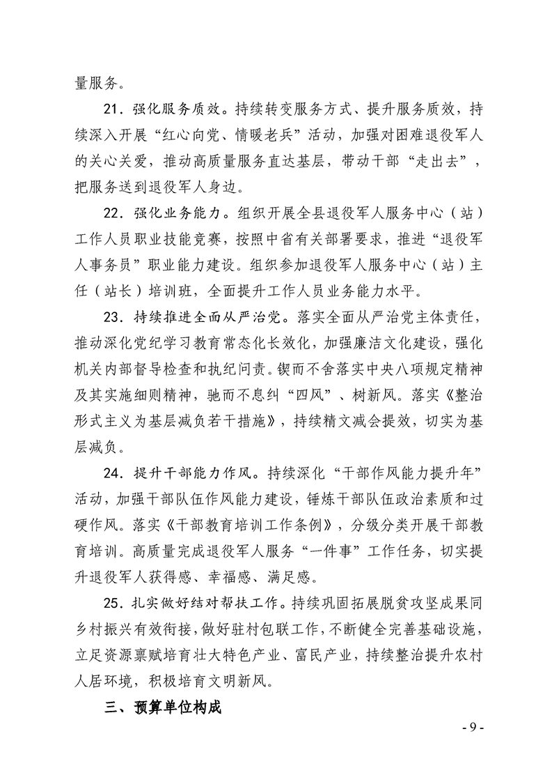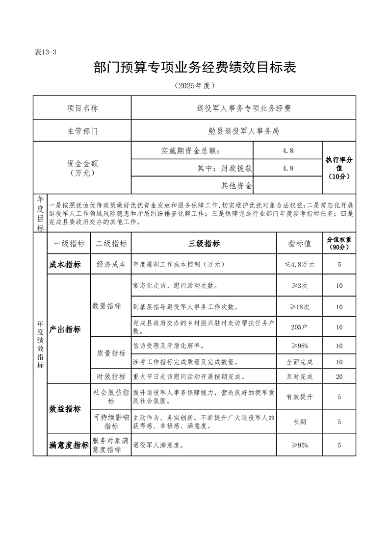 勉县退役军人事务局2025年部门预算公开说明