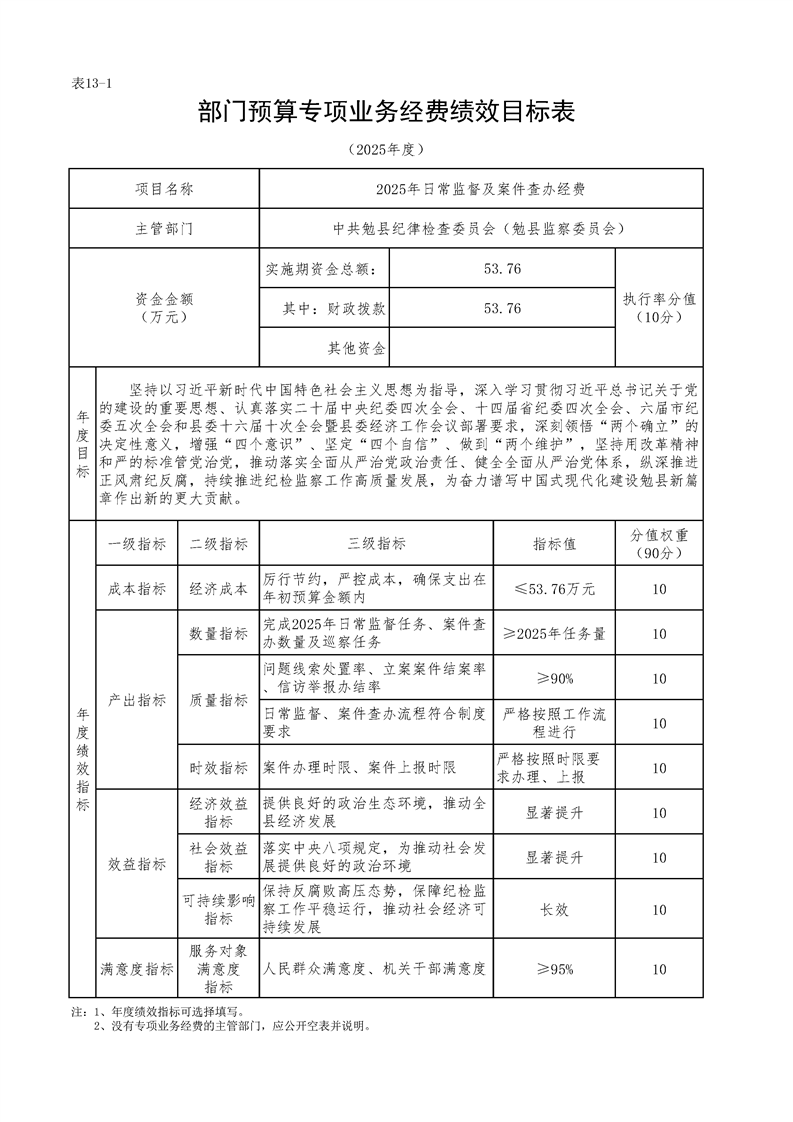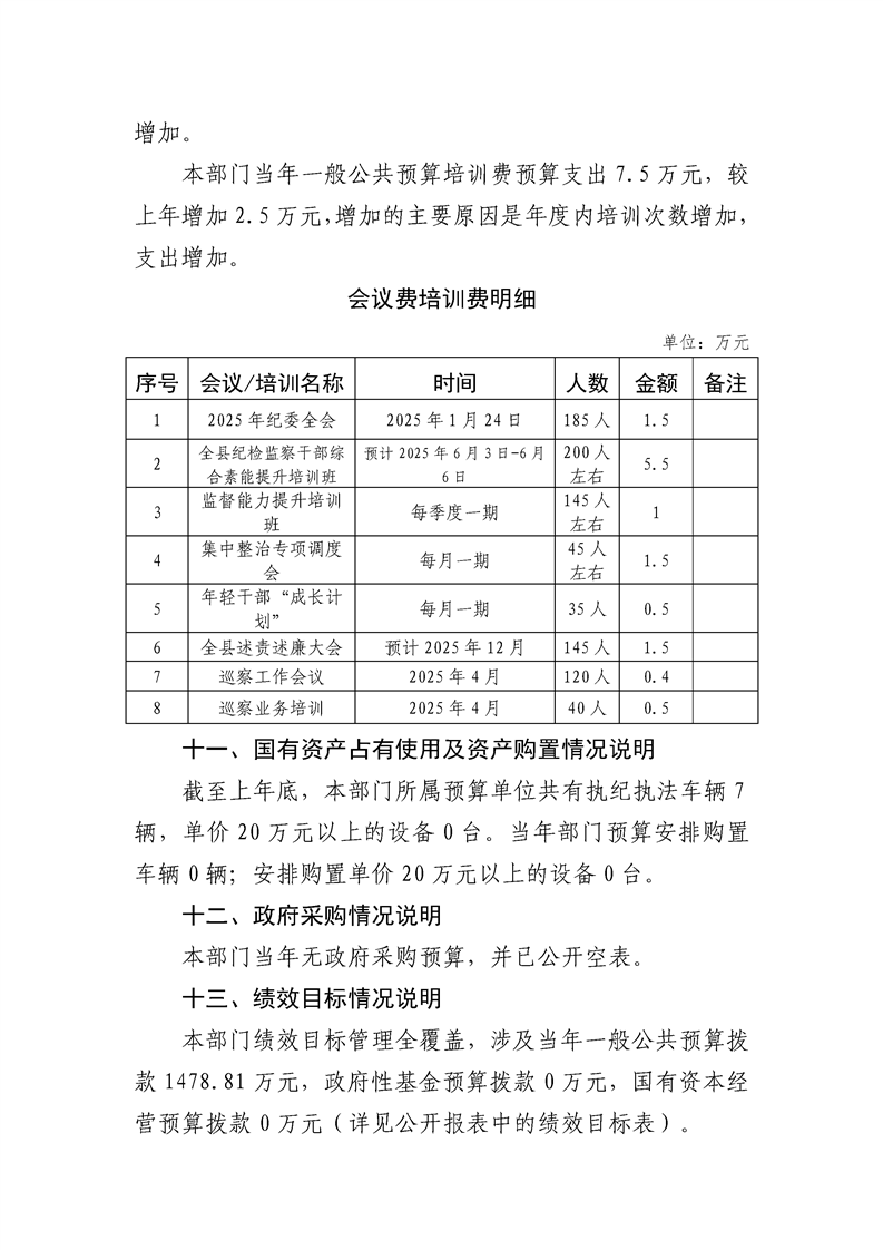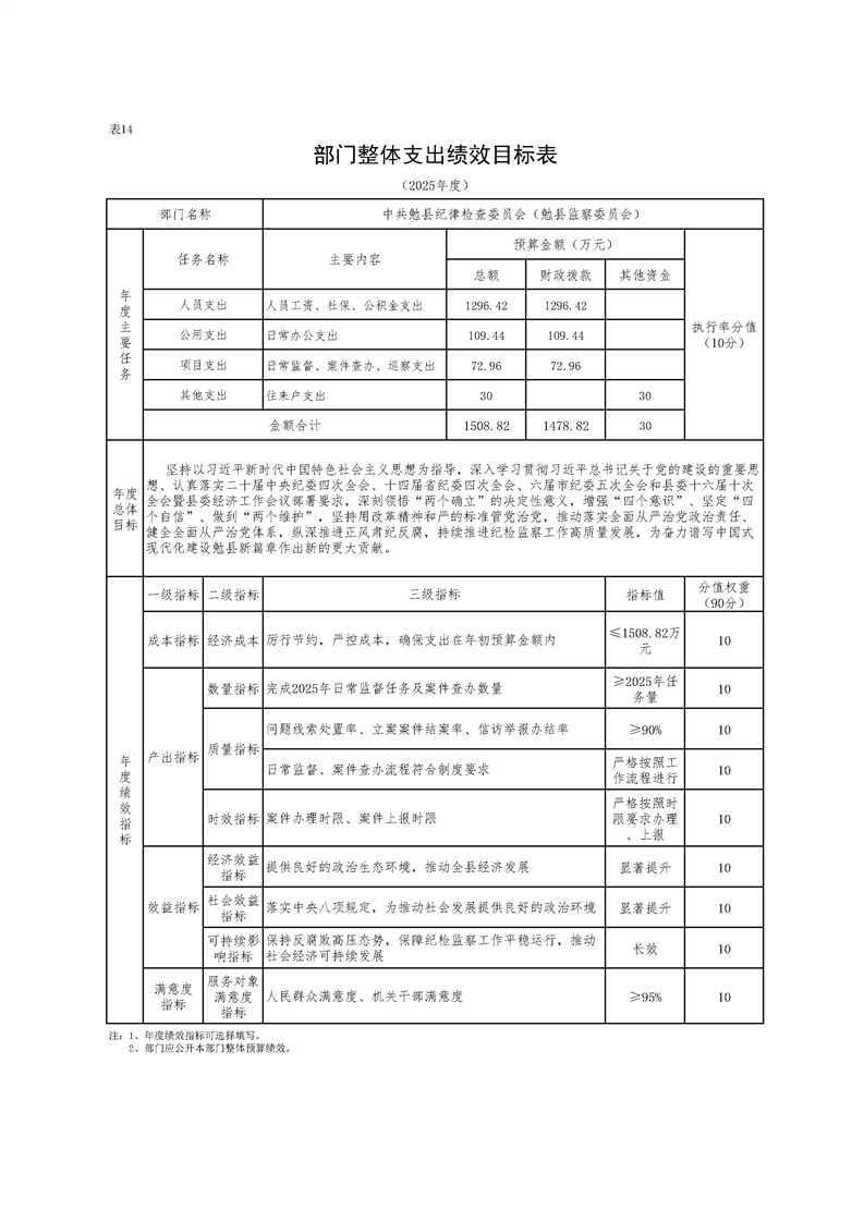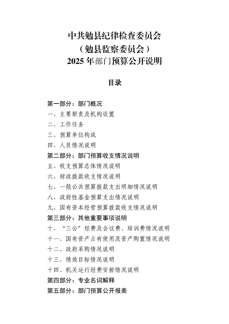 中共勉县纪律检查委员会(勉县监察委员会)2025年部门预算公开说明