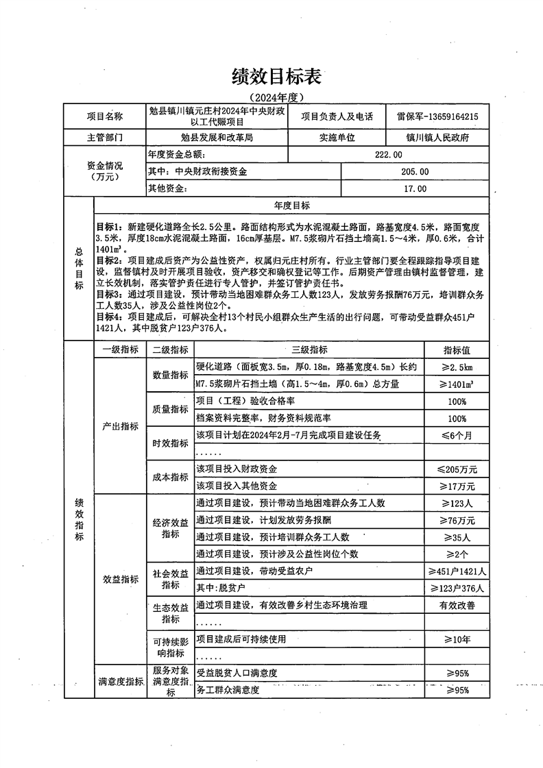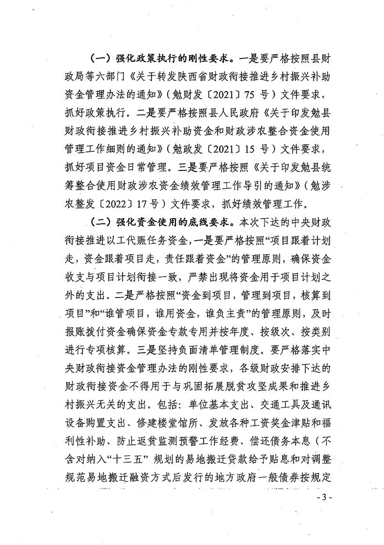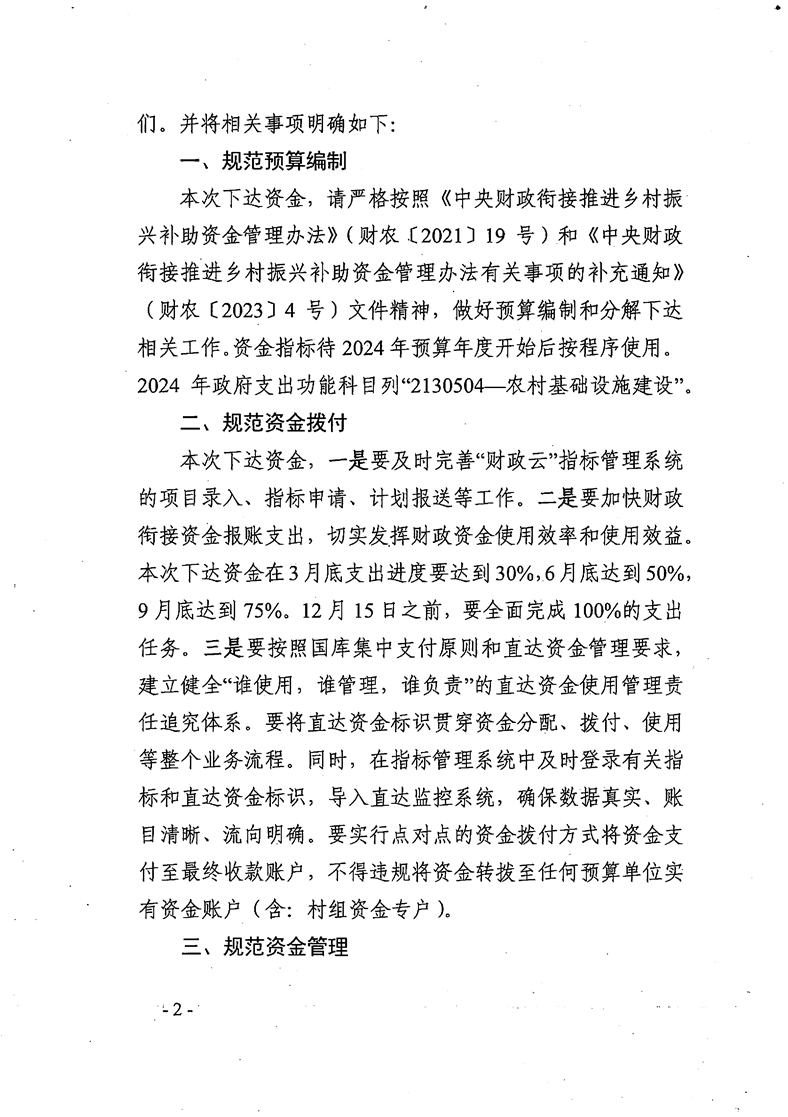 勉财办农〔2024〕7号 勉县财政局关于下达2024年度中央财政衔接推进乡村振兴补助资金预算(以工代赈任务)的通知