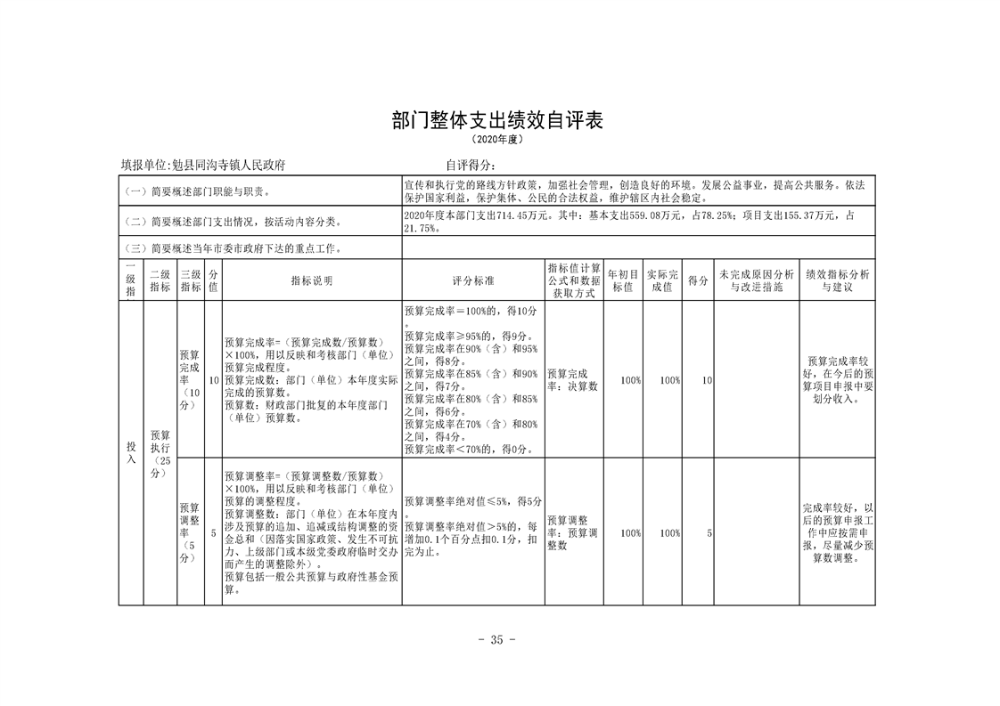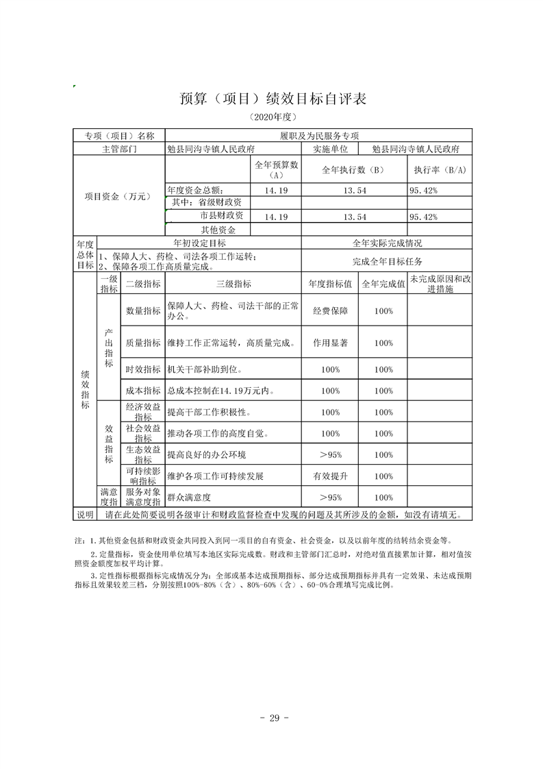 勉县同沟寺镇人民政府2020年部门决算