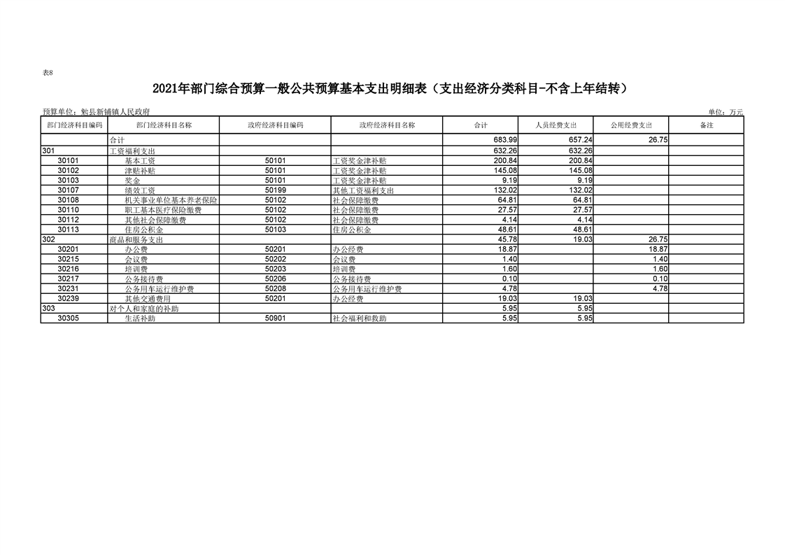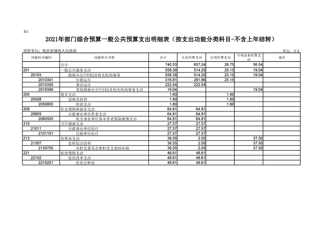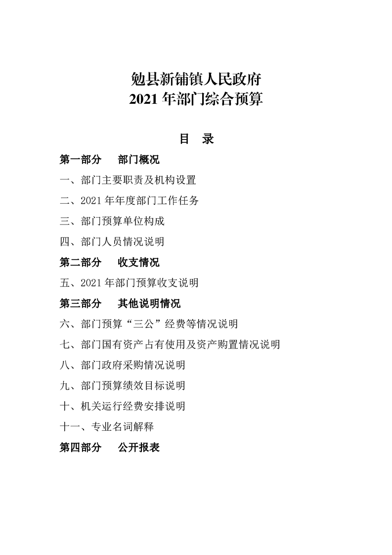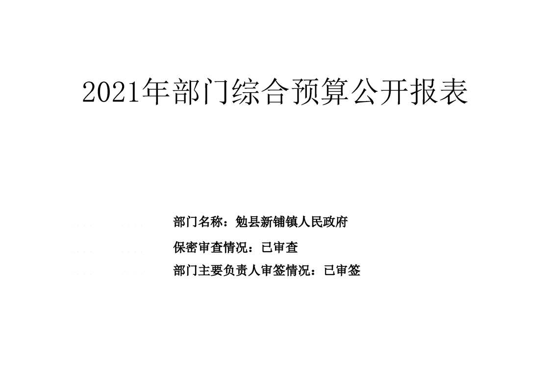 勉县新铺镇人民政府2021年部门综合预算
