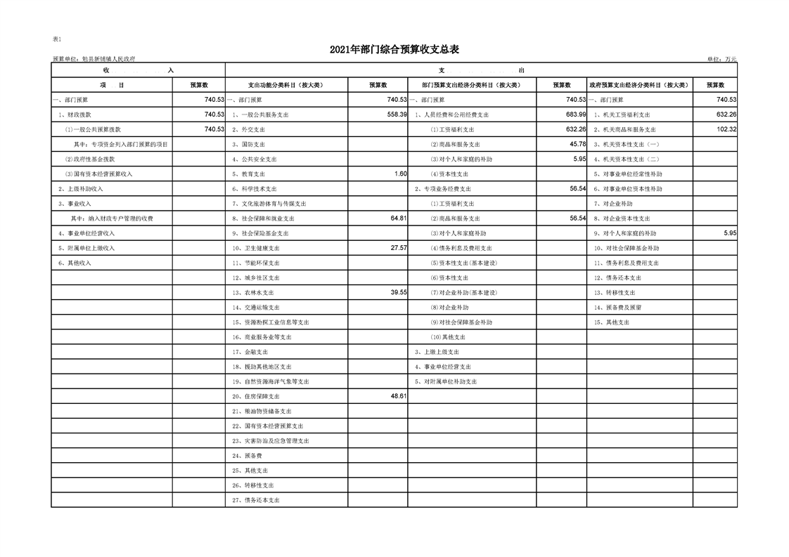 2021年镇办预算公开