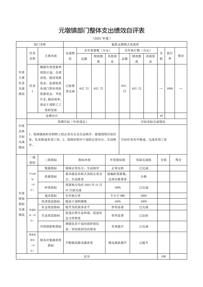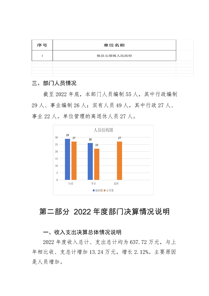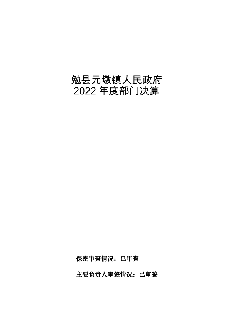 勉县元墩镇人民政府2022年部门决算