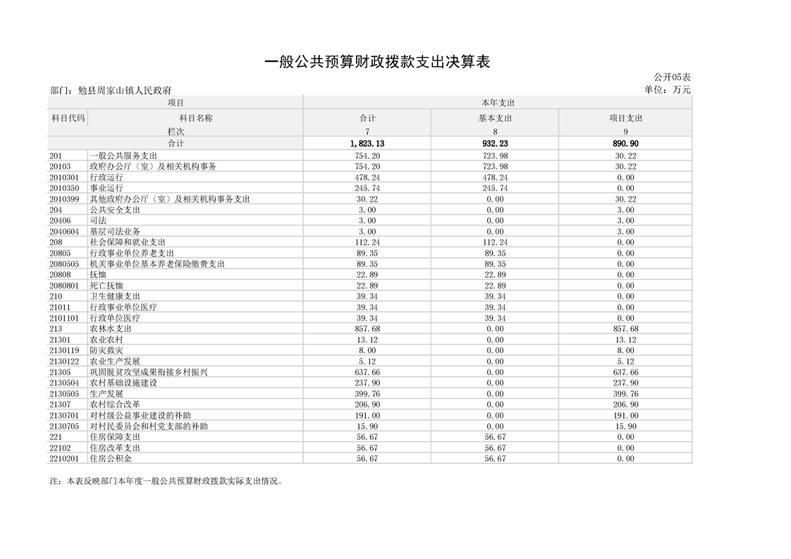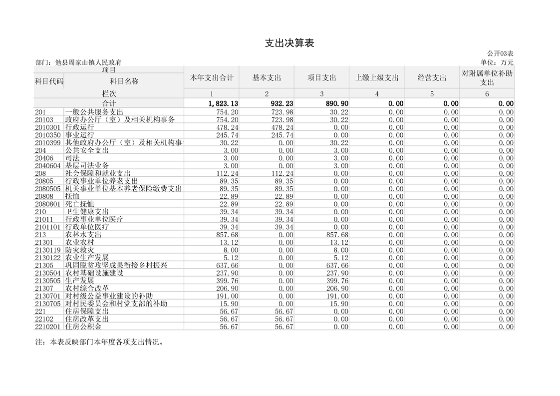 勉县周家山镇人民政府2023年部门决算公开