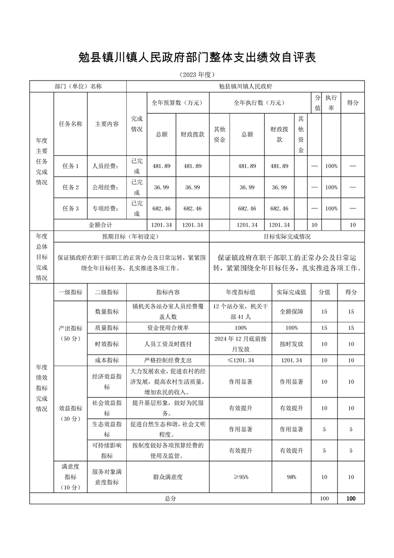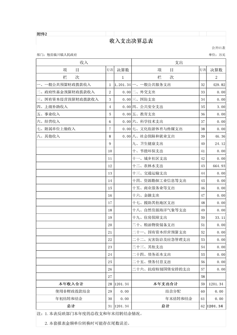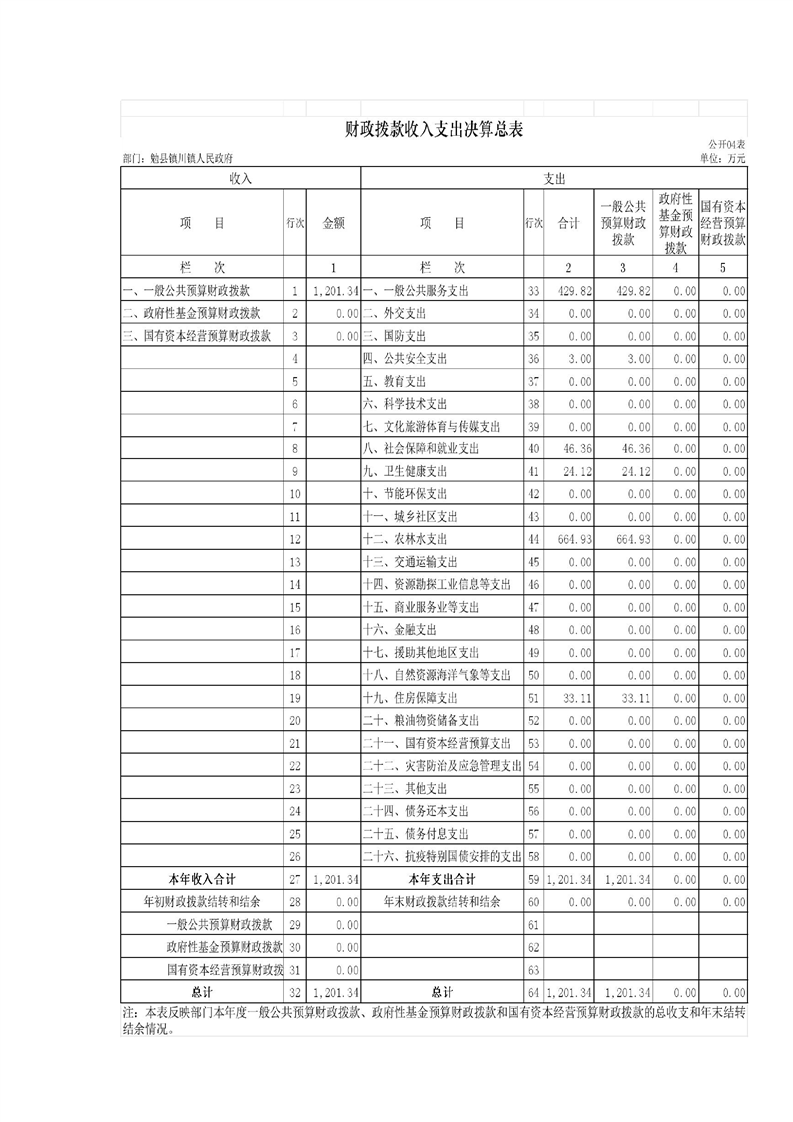2023年镇办决算公开