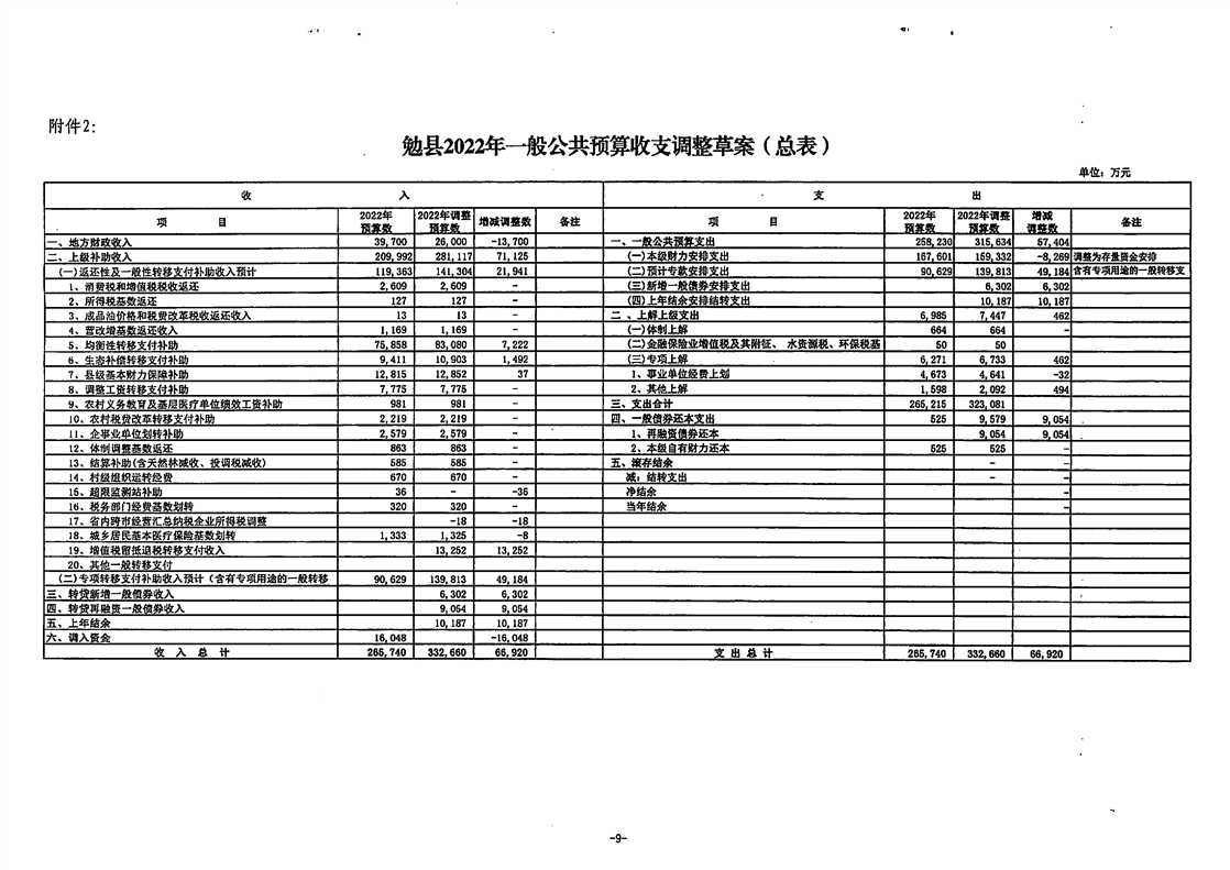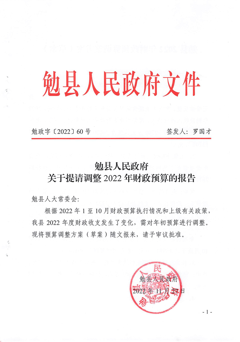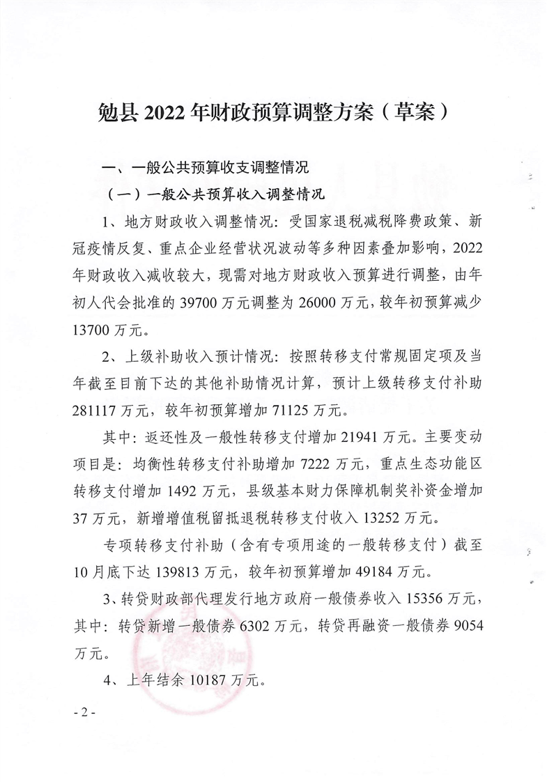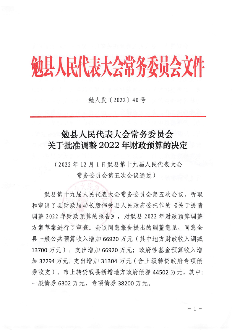 勉县人民代表大会常务委员会关于批准调整2O22年财政预算的决定及开云电竞地址关于提请调整2O22年财政预算的报告