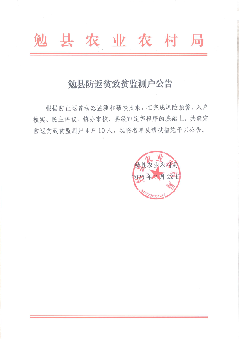 勉县防返贫致贫监测户公告4户10人