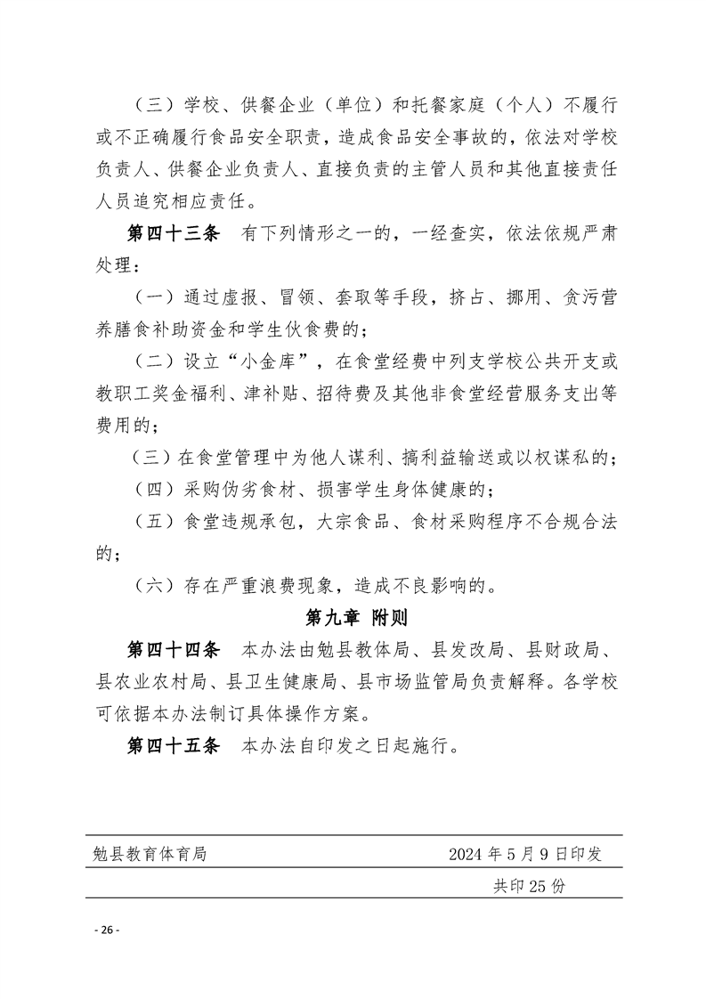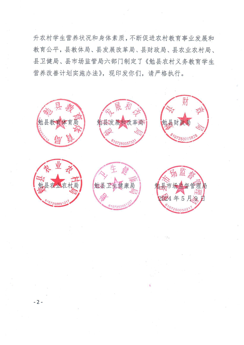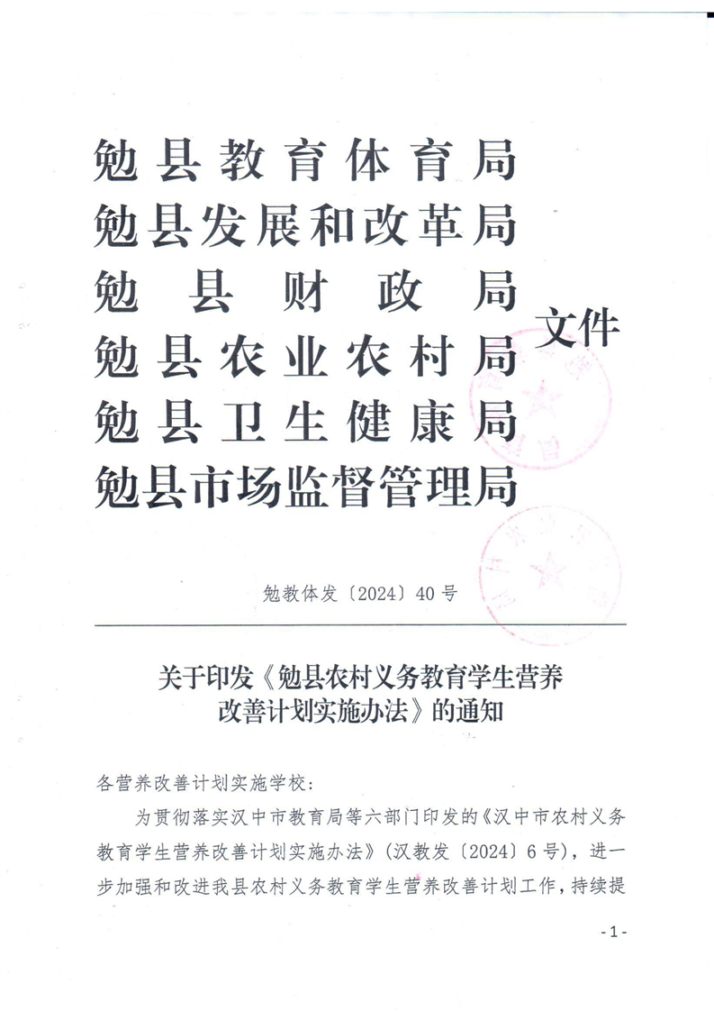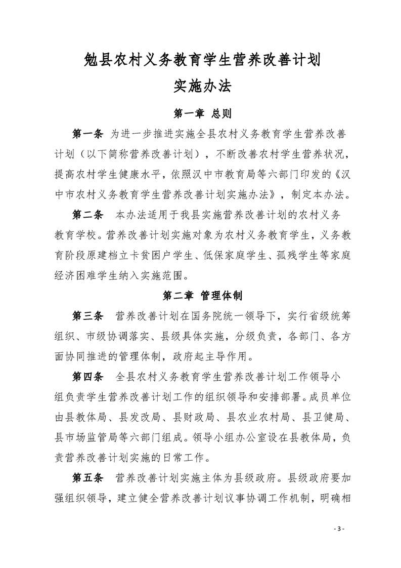 关于印发《勉县农村义务教育学生营养改善计划实施办法》的通知