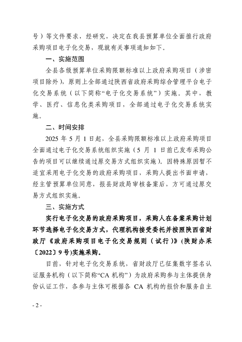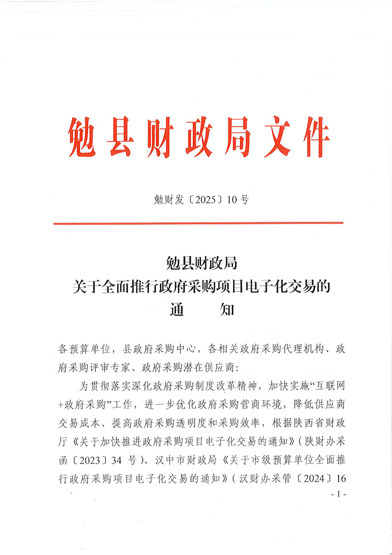 勉县财政局关于预算单位全面推行政府采购项目电子化交易的通知