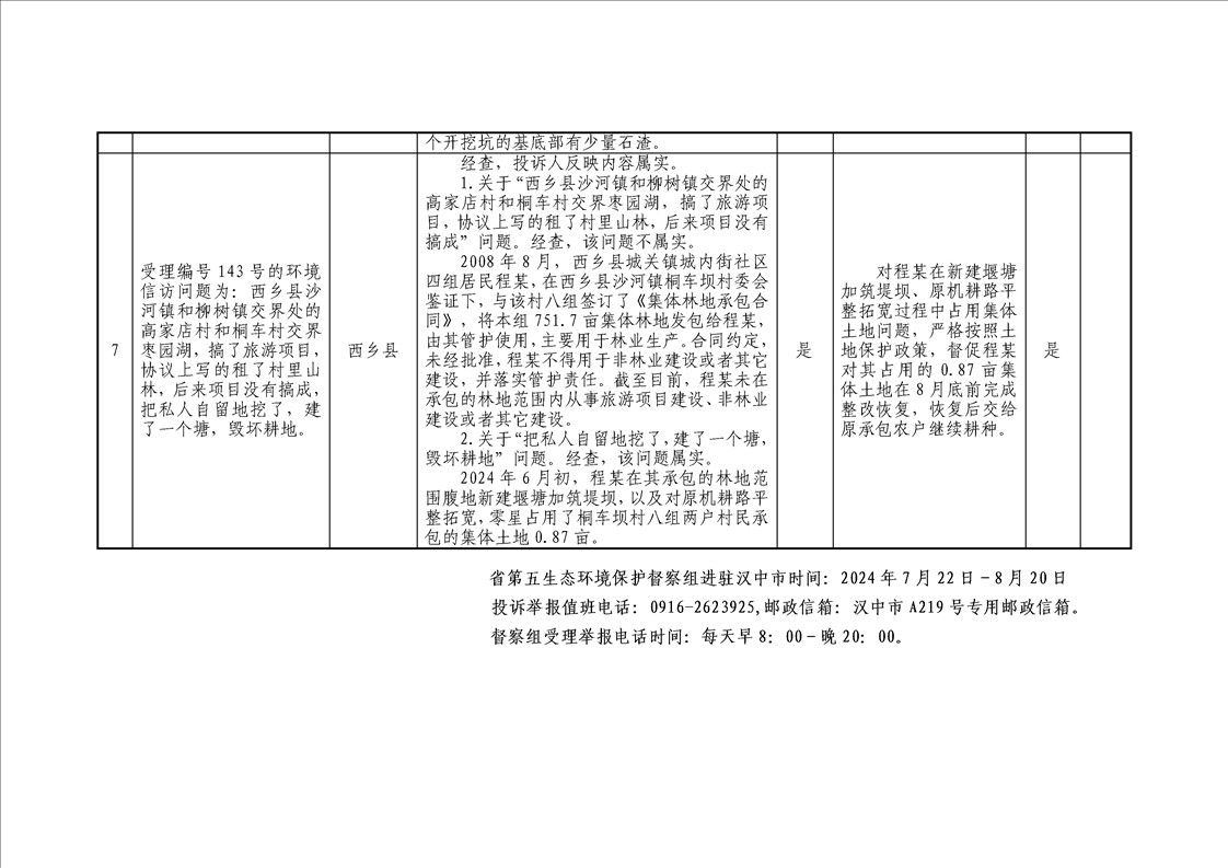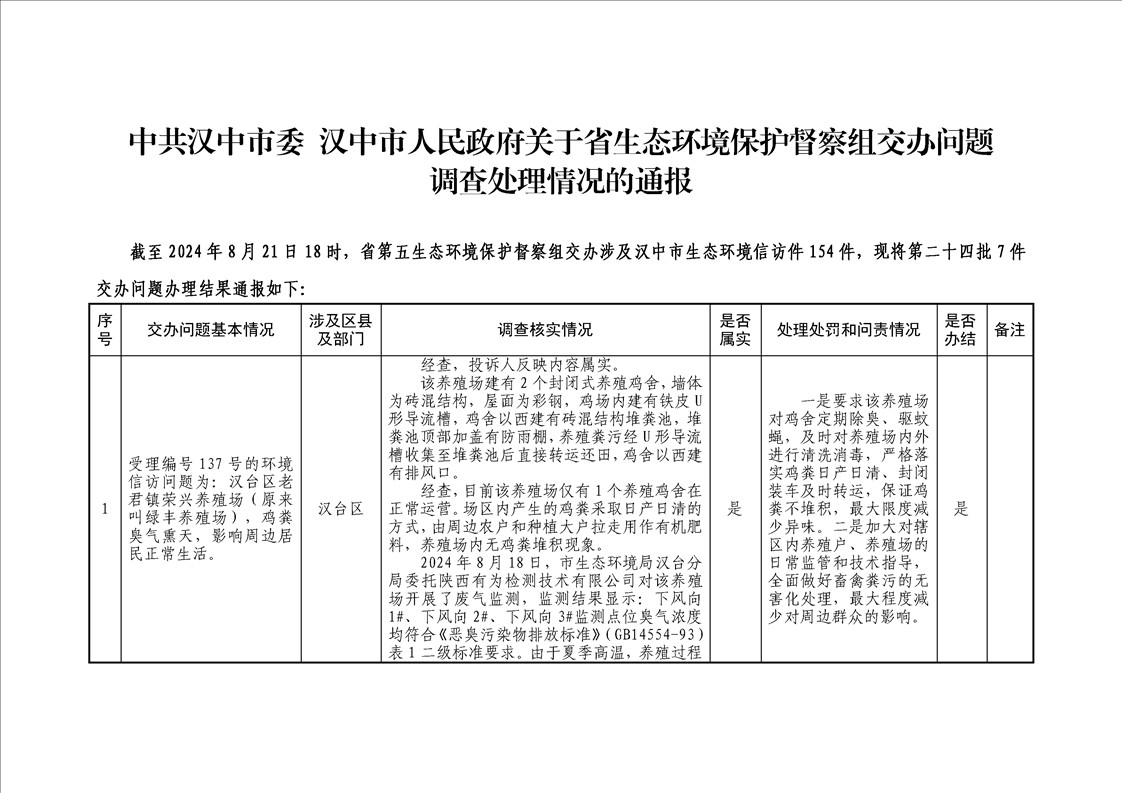 中共汉中市委 汉中市人民政府关于省生态环境保护督察组交办问题调查处理情况的通报(第二十四批7件)